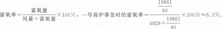 一号高炉富氧鼓风系统包括富氧站(台)及各种阀门和安全装置、冷风管道、热风炉及其附属设备。高炉富氧的目的是提高冶炼强度,增加高炉产量和强化喷吹燃料在风口前的燃烧,通常富氧率在5%以内。当高炉炉壳发红、开裂时,必须果断、迅速地停氧后减风,防范烧穿事故发生。在停风过程中要可靠切断氧气管道,防止发生爆炸。