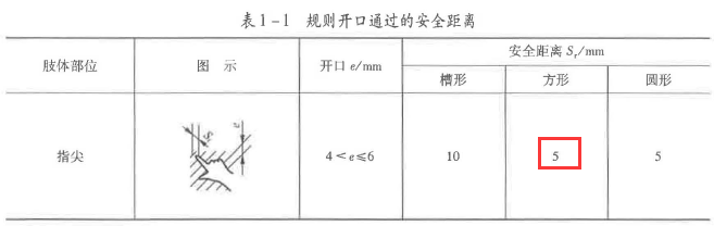 为防止伤害指尖,冲压设备防护装置方形开口的安全距离不大于10mm