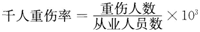 千人重伤率:一定时期内,平均每千名从业人员,因伤亡事故造成的重伤人数。