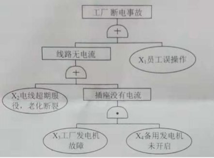 某化工厂在生产过程中出现断电事故。运用事故树法进行分析后,得出可能造成事故发生的原因逻辑关系见下图。根据该图,可判定断电事故的基本原因是( )。