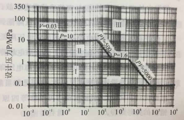 首先将压力容器的介质分为两组,第一组介质为毒性程度极度危害、高度危害的化学介质,易燃介质,液化气体;第二组介质为除第一组以外的介质组成,例如毒性程度为中毒危害以下的化学介质,包括水蒸气,氮气等。氮气为第二组介质。根据压力和容积确定坐标点,以坐标点所在位置确定等级。故压力1.0MPa,容积1m³如图所示应为Ⅰ类。