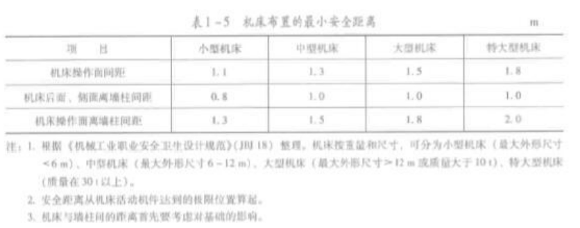 此处教材有变动,需注意:最大外形尺寸为25m,重量20t,判断为:大型机床,根据表格数据得出:该铣床后面、侧面与墙、柱之间的安全距离至少是1m