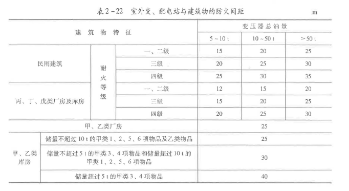 民用建筑耐火等级为四级,变压器总油量为5t,距离为10m